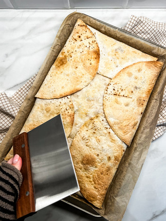 Leggið 7-8 tortillur á bökunarplötu þakta bökunarpappír þannig að þær liggi aðeins yfir hvor aðra. Þetta á að mynda botninn.
