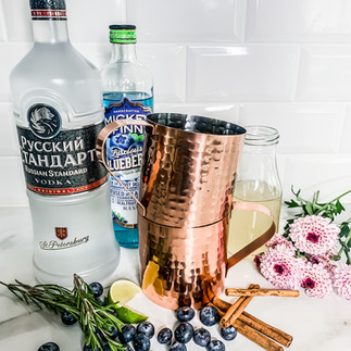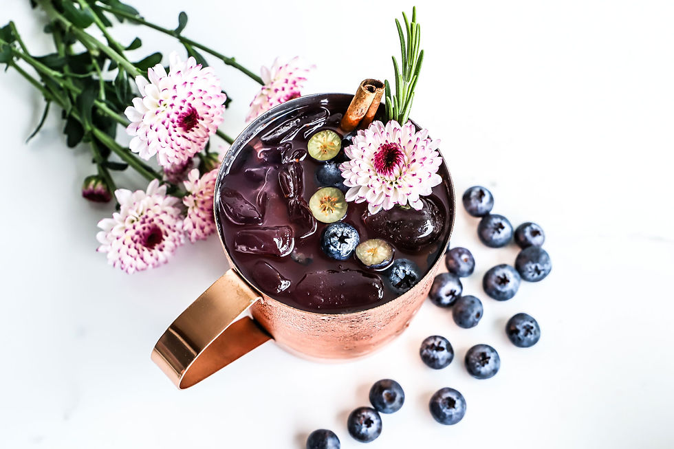 Moscow mule með bláberja og rósmarín twisti sem gerir kokteilinn einstaklega ljúfan. Drykkurinn inniheldur vodka, bláber, engiferbjór, rósmarín og kanil. Frískandi og ljúfur drykkur sem er tilvalið að njóta um helgina.