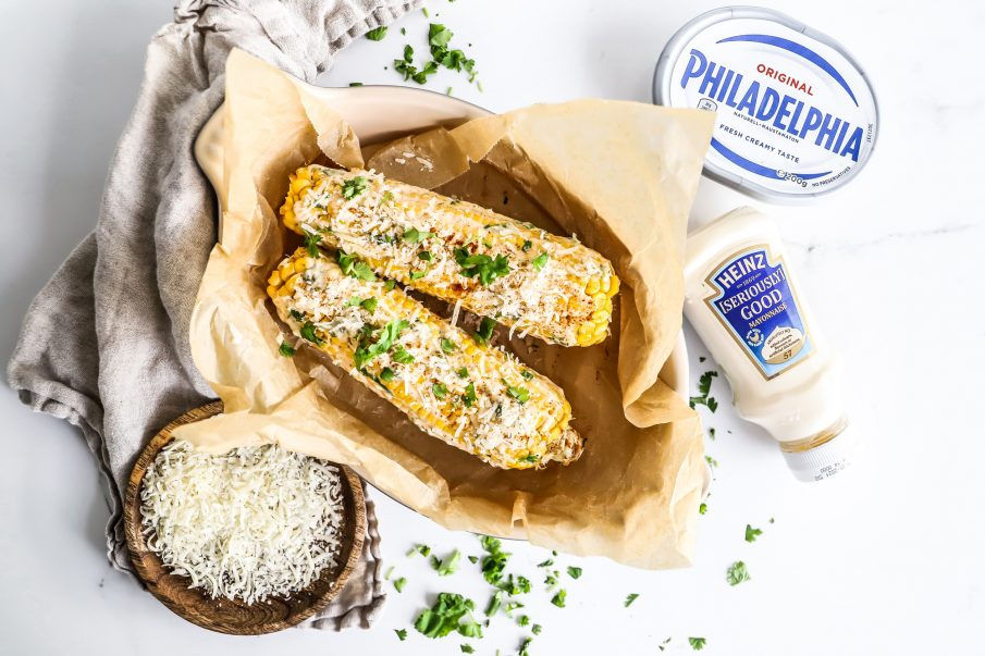 Ljúffengir maískólfar sem eru í miklu uppáhaldi. Þeir eru smurðir með blöndu af majónesi, rjómaosti, cayenne pipar, kóríander og parmesan osti. Bragðgóð blanda sem passa vel við maískólfann. En vá hvað ég elska þegar ferskur maís er til í verslunum! Þá er þetta oft á boðstólum og sérstaklega gott með grillmatnum. Mæli með að þið prófið!