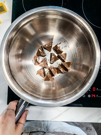Bræðið eitt Toblerone súkkulaði yfir vatnsbaði (skálin má ekki snertai vatnið fyrir neðan).
