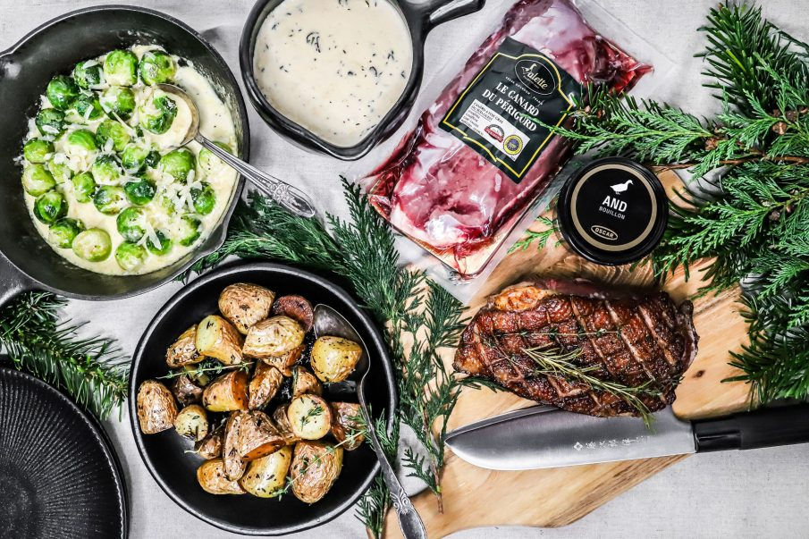 Franskar andabringur með steiktum kartöflum, kantarella sveppasósu og rósakáli með rjóma og parmesan er sannkallaður hátíðarmatur. Gott er að bera öndina fram með t.d. waldorfsalati yfir hátíðarnar og það er algjört „must“ að steikja kartöflurnar upp úr andafitunni. Rósakál með rjóma og parmesan setur punktinn yfir i-ið og allt rennur þetta svo ljúflega niður með góðu rauðvíni.