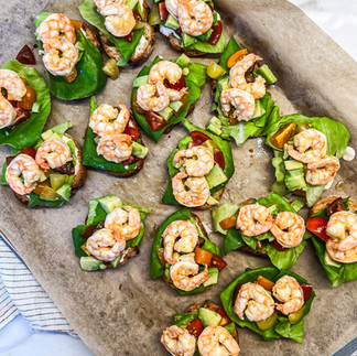 Þennan frábæra forrétt fyrir hátíðirnar útbjó ég í samstarfi við Innnes. Risarækjur í Tabasco ofan á súrdeigs baguette með tómötum, avókadó, salati og ljúffengri sósu. Leikur við bragðlaukana! Mæli með að bera fram með ísköldu Cava og njóta í botn!