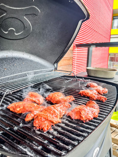 Grillið kjúklinginn á heitu grilli þar til hann er eldaður í gegn.